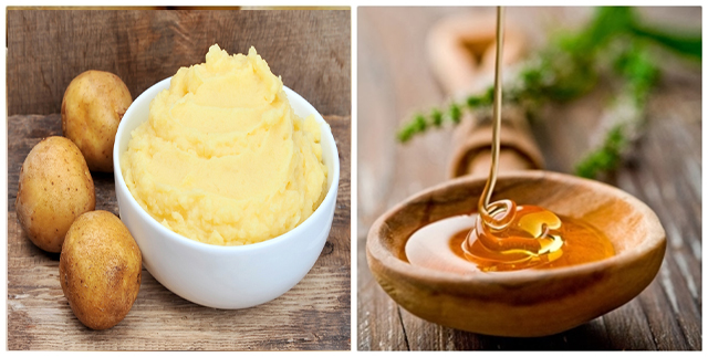 – Bạn lấy 1 củ khoai tây rửa sạch, luộc chín, nghiền nhuyễn rồi trộn với 1 thìa mật ong được hỗn hợp.
