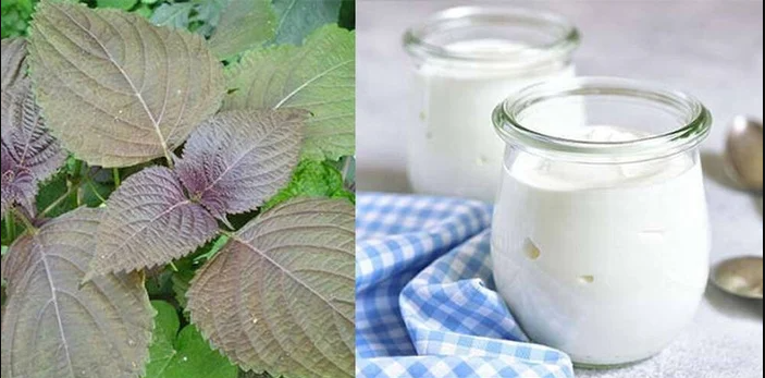 Trong sữa chua có nhiều axit amin và vitamin cùng khoáng chất tốt cho làn da. Sự kết hợp giữa sữa chua và lá tía tô chống lão hóa cho da, trả lại màu da trắng hồng mịn màng.