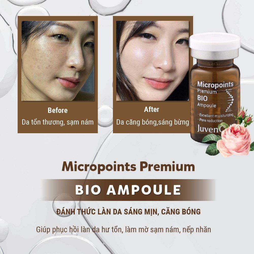 Micropoints Premium BIO Ampoule là sản phẩm nổi bật của thương hiệu mỹ phẩm đình đám Juvencell Hàn Quốc. Sản phẩm này được xem là bước tiến mạnh mẽ trong ngành công nghiệp mỹ phẩm vì đã tạo nên bước đột phá giúp những làn da lão hoá, mỏng, yếu, nhạy cảm nhanh chóng phục hồi và trẻ hoá nhờ quá trình thúc đẩy tái tạo tế bào mới liên tục. Chính vì vậy mà Micropoints Premium BIO Ampoule thường được sử dụng trong các spa, thẩm mỹ viện do bác sĩ da liễu khuyên dùng.