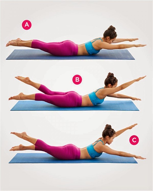 Nằm sấp người, nâng cao phần đầu và cố định tay, duỗi thẳng và kéo căng tối đa chân và phần lưng. Hít thở đều đặn khi tập luyện, cố gắng duy trì trong thời gian nhiều nhất có thể.