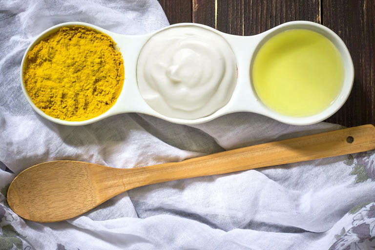 3. Mặt nạ sữa chua và nghệ làm sạch dầu nhờn, đánh bay vết thâm mụn