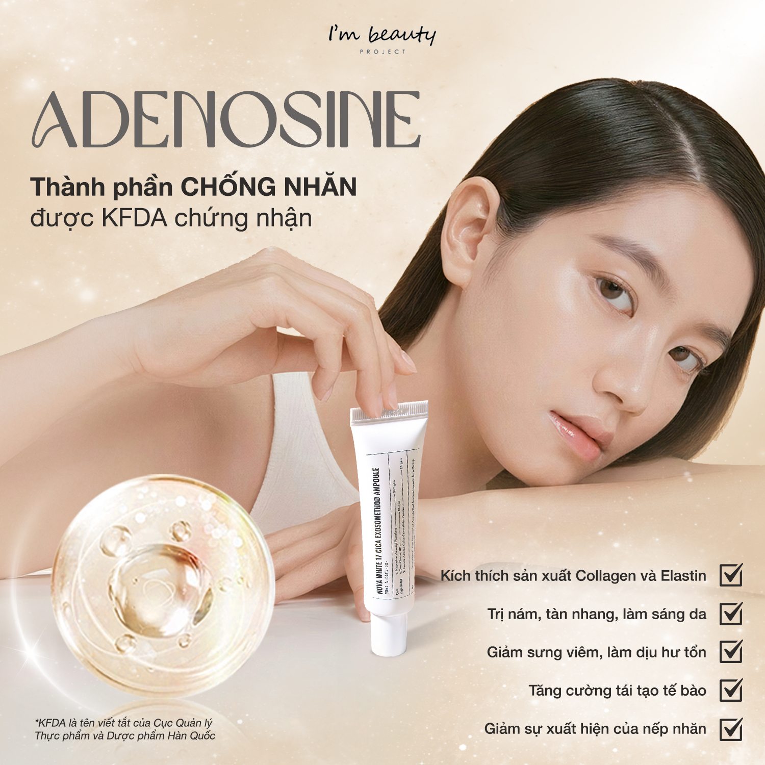 Giữa vô vàn lựa chọn ấy, Adenosine nổi lên như một thành phần chống lão hóa được chứng minh khoa học và được Cục Quản lý Thực phẩm và Dược phẩm Hàn Quốc (KFDA) công nhận về hiệu quả cải thiện nếp nhăn, chống lão hóa da. Đây là một trong số ít hoạt chất không chỉ giúp làm mờ nếp nhăn, mà còn phục hồi cấu trúc da, tăng độ đàn hồi và săn chắc từ bên trong, mang lại làn da trẻ trung và căng mịn bền vững theo thời gian.