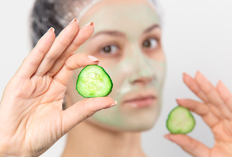 • Rửa sạch ½ quả dưa leo, sau đó thái mỏng và đắp trực tiếp lên da mặt