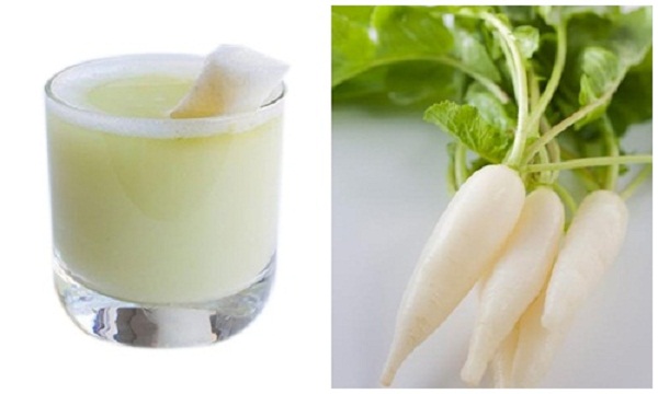 Mỗi tuần 2-3 lần, vào buổi tối trước khi đi ngủ bạn lấy 2 thìa nước ép củ cải trắng trộn cùng 2 thìa nước ép giá đỗ, thoa đều khắp mặt và mát xa nhẹ nhàng. Cuối cùng, sau 15 phút rửa sạch lại với nước lạnh.