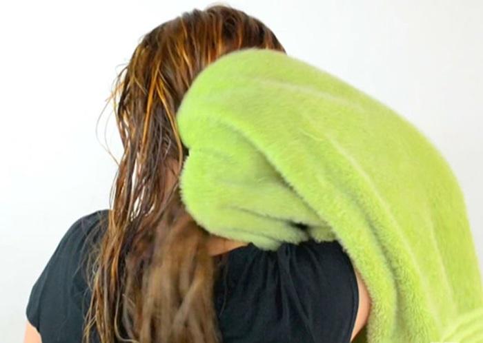 Không ít người thường dùng khăn chà xát mạnh để lấy hết nước trên tóc, hoặc xoắn tóc với khăn rồi cố định chặt ở đỉnh đầu, tuy nhiên đây là thói quen cần thay đổi. Việc vò tóc bằng khăn hoặc cuộn tóc thật chặt sau khi gội khiến tóc bị kéo căng, chân tóc chịu nhiều áp lực, sợi tóc trở nên yếu mảnh hơn, lâu dài sẽ gây ra hiện tượng rụng tóc thành mảng. Nếu muốn làm khô tóc bạn có thể dùng một chiếc khăn mềm và thấm hút tốt, chấm lên tóc để lấy đi lượng nước thừa một cách nhẹ nhàng nhất có thể.