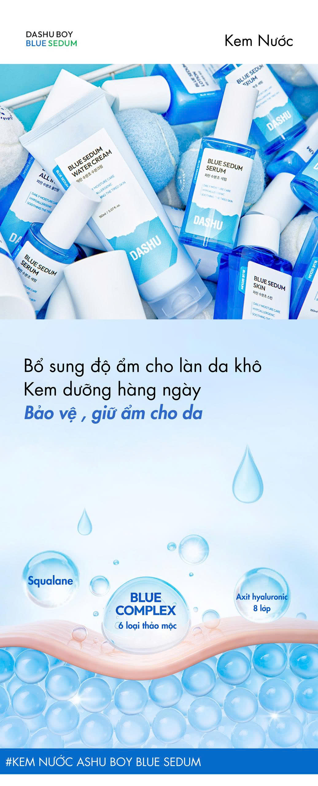 Dưỡng ẩm luôn là bước quan trọng và cần thiết nhất trong mỗi chu trình skincare. Khi da có đủ độ ẩm sẽ trở nên mịn màng hơn, giảm bong tróc, điều tiết dầu nhờn, ngăn ngừa lão hóa và bảo vệ da.