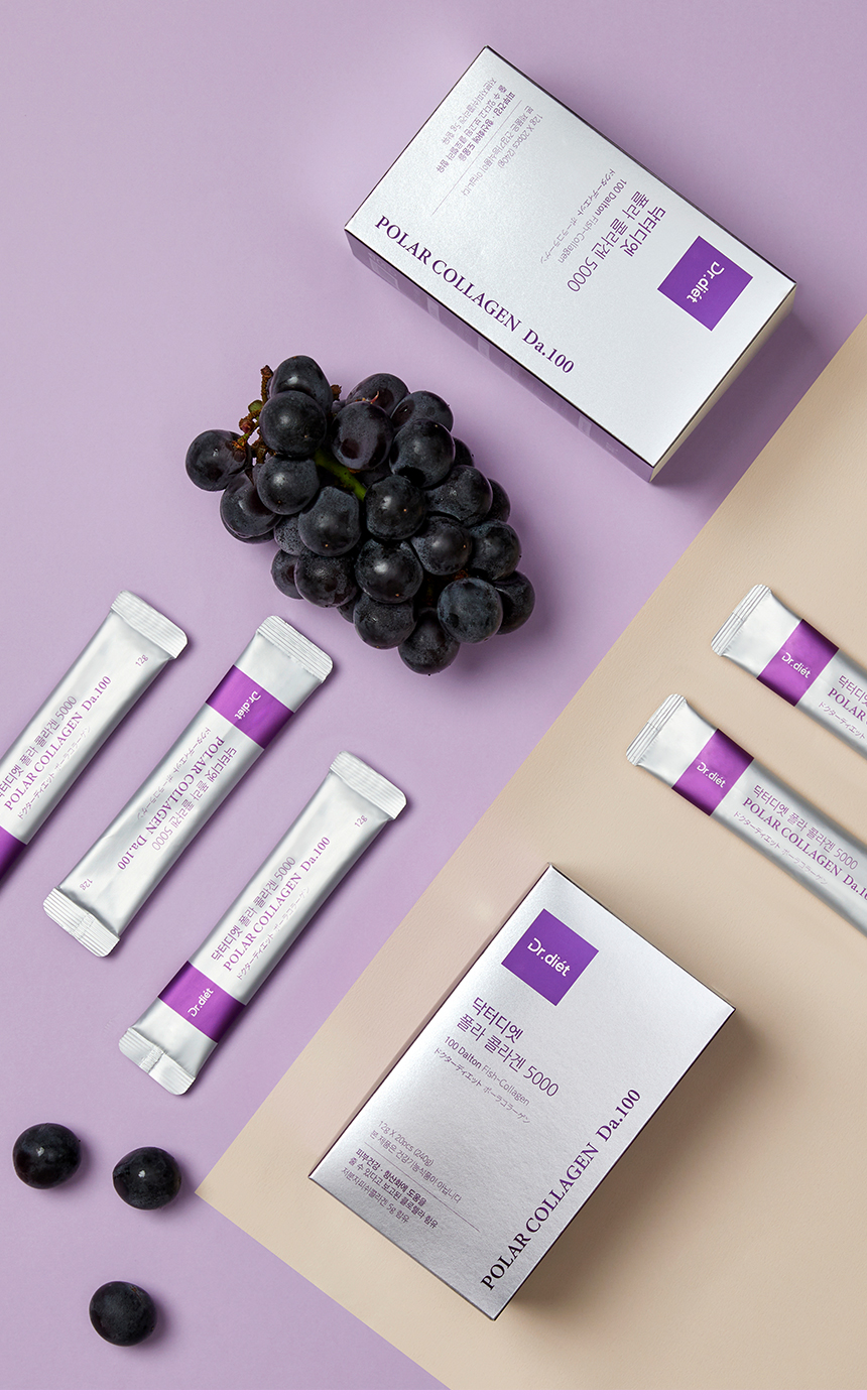 Dr. Diet Polar Collagen 5000 Da.100 với Chlorella được cho là có tác dụng hỗ trợ sức khỏe làn da và chống oxy hóa.