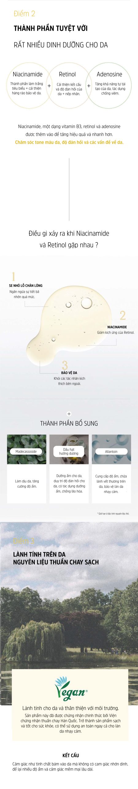 - Retinol + Niacinamide + Adenosine chức năng kép dưỡng trắng và làm mờ nếp nhăn.