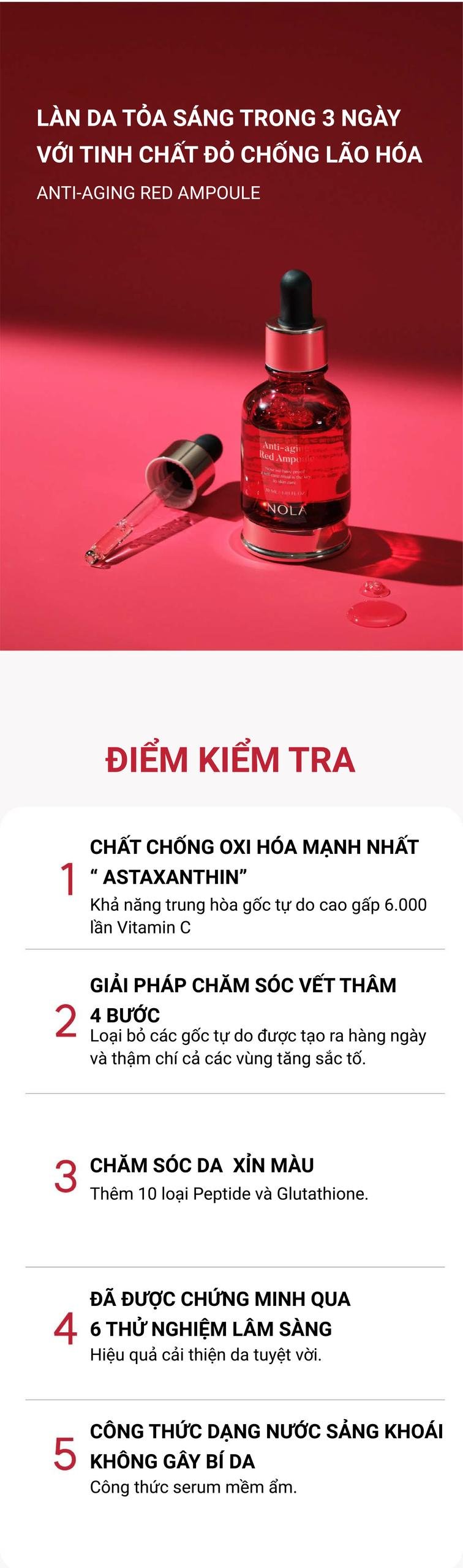 Tinh Chất Chống Lão Hóa Anti Aging Red Ampoule với chức năng kép làm trắng chống nhăn.Phép màu xuất hiện chỉ với 3 giọt sau 3 ngày – bạn sẽ nhận thấy làn da có sự thay đổi rõ rệt.