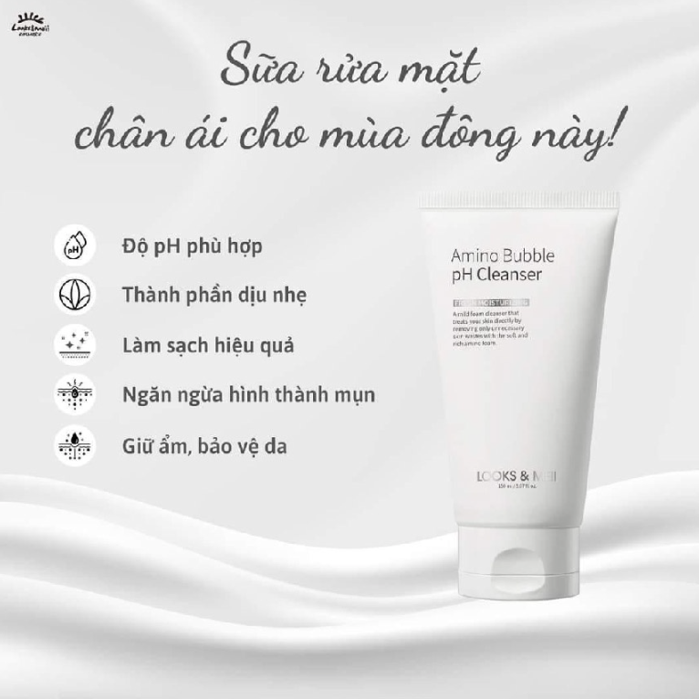 Sữa rửa mặt dịu nhẹ cho da nhạy cảm LOOKS&MEII Amino Bubble pH Cleanser 150ml LOOKS&MEII Amino Bubble pH Cleanser là dòng sản phẩm chăm sóc da cao cấp hàng đầu HÀN QUỐC thuộc thương hiệu LOOKS & MEII.