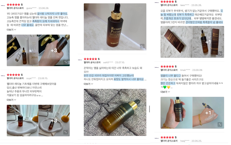 Serum chống lão hoá da ban đêm Retinol Peptide Wellderma 6 trong 1 từng được ví von như một “cơn bão” càn quét khắp các diễn đàn làm đẹp lớn nhỏ tại quê hương Hàn Quốc. Từ website của thương hiệu, cho tới loạt mạng xã hội lớn như facebook, instagram… đâu đâu cũng thấy hình ảnh thiết kế màu nâu vàng quen thuộc, thể hiện qua số lượt bài đăng “khủng”. Vừa ra mắt chính thức tại Việt Nam, Serum chống lão hoá da ban đêm Retinol Peptide Wellderma 6 trong 1 đã tạo nên một xu hướng làm đẹp mới. Rất nhiều các bạn trẻ Việt nhanh chóng cập nhật, săn lùng và “rinh” về để trải nghiệm. Tại các diễn đàn, hội nhóm lớn, các bài đăng về sản phẩm tăng chóng mặt, thu hút rất nhiều phản hồi, comment tích cực.