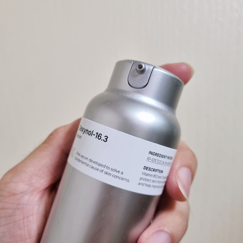 Chai serum có vẻ ngoài độc lạ này sẽ gây ấn tượng với người dùng ngay từ lần đầu ngắm nhìn. Khác hoàn toàn với các dòng serum khác được đựng trong lọ thủy thinh hay nhựa có ống dẫn, serum Dexynol-16.3 lại được đựng trong một chai bạc với giao diện khá lạ. Chính nhờ vỏ ngoài độc lạ này đã giúp bảo quản trọn vẹn dưỡng chất của serum Dexynol-16.3 để tinh chất khi lên da sẽ giữ nguyên cấu tạo và phát huy tối đa công dụng “chữa lành” làn da.