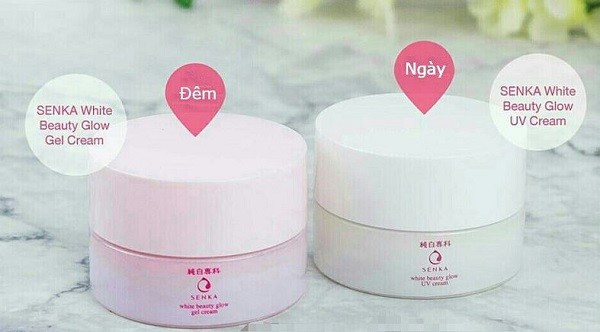 - Senka White Beauty Glow Gel Cream ban đêm giúp chăm sóc hỗ trợ để làn da chị em trở nên đều màu và trắng mịn tự nhiên.