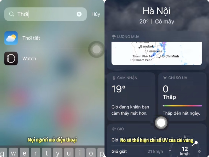 – Check chỉ số UV Index: Mở ứng dụng “Thời tiết” (Weather) trên điện thoại, kéo xuống mục UV Index.