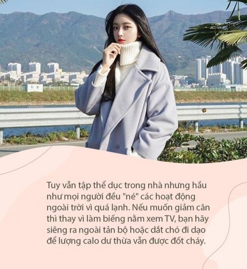 Tuy vẫn tập thể dục trong nhà nhưng hầu như mọi người đều “né” các hoạt động ngoài trời vì quá lạnh. Nếu muốn giảm cân thì thay vì làm biếng nằm xem TV, bạn hãy siêng ra ngoài tản bộ hoặc dắt chó đi dạo. Chỉ cần có vận động động thì ít nhiều gì quá trình trao đổi chất cũng diễn ra suôn sẻ hơn, nhờ vậy mà lượng calo dư thừa vẫn được đốt cháy như thường.