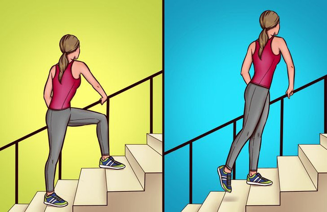 – Đứng trên cầu thang, xoay người sang bên 1 góc 90 độ và giữ chặt tay nắm