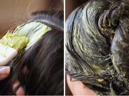 Bạn xay nhuyễn ½ quả bơ đã chín và 1 lòng đỏ trứng gà, hỗn hợp này bạn có thể ủ tóc trước khi gội cũng được. Vừa ủ tóc vừa massage da đầu tầm 15 đến 30 phút. Sau khi ủ tóc xong, hỗn hợp này sẽ có mùi khá khó chịu. Chính vì vậy hãy gội đầu lại thật kỹ 2 lần để tóc và chân tóc hoàn toàn sạch và hết mùi.