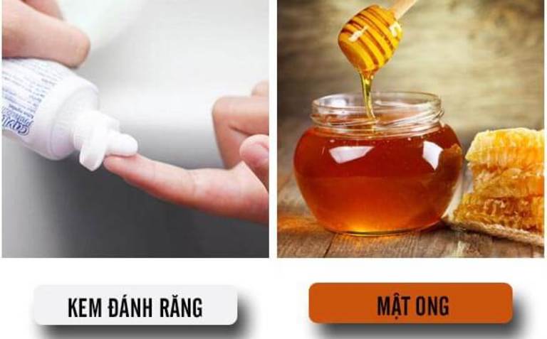 - Trộn đều 1 thìa cà phê mật ong với kem đánh răng để đắp lên da sau khi đã làm sạch với nước ấm.