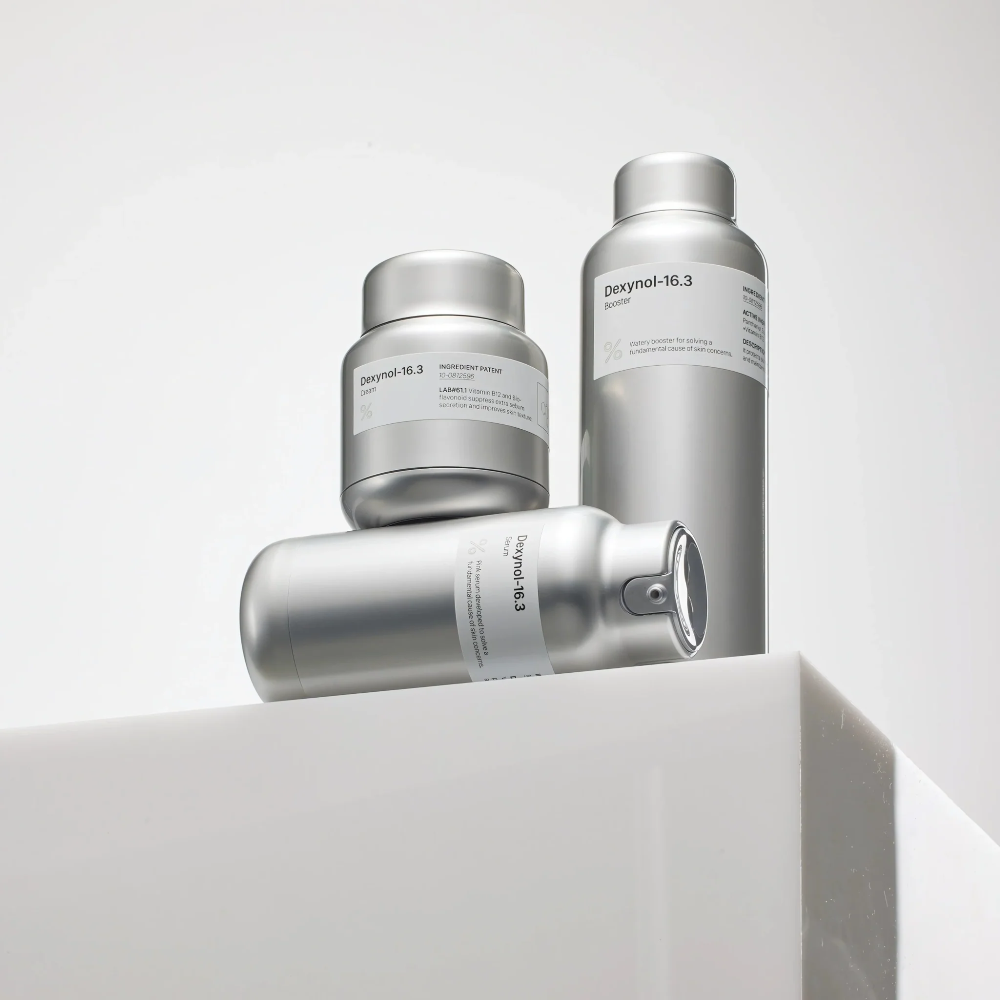 Dexynol-16.3 gồm kem dưỡng, serum, sữa rửa mặt, booster. Dòng sản phẩm Dexynol-16.3 sử dụng công nghệ Deliver-inTech™ độc quyền của Celltem Bio, cung cấp cho nàng da dầu một routine kiềm dầu, chống lão hóa và “chữa lành” làn da với đủ các bước từ làm sạch, dưỡng ẩm và chống lão hóa, thúc đẩy giúp hoạt chất thấm sâu đến tầng hạ bì, nâng hiệu quả cải thiện làn da lên gấp 10 lần thông thường.