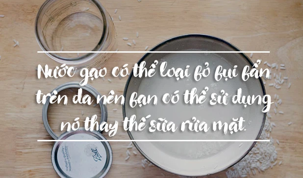 – Để làm mặt nạ, bạn nên chờ một lúc cho nước gạo lắng xuống, gạn đi phần nước trong, sau đó dùng phần hỗn hợp đặc phía dưới thoa lên da.
