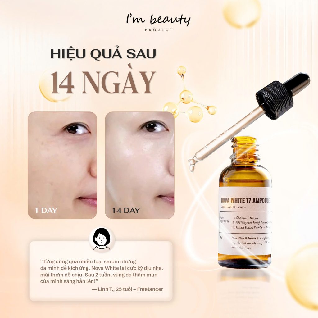 Hiểu được điều đó, Nova White 17 Ampoule ra đời như một “lọ serum đa nhiệm” chứa trọn vẹn những gì làn da cần chỉ trong một sản phẩm duy nhất.