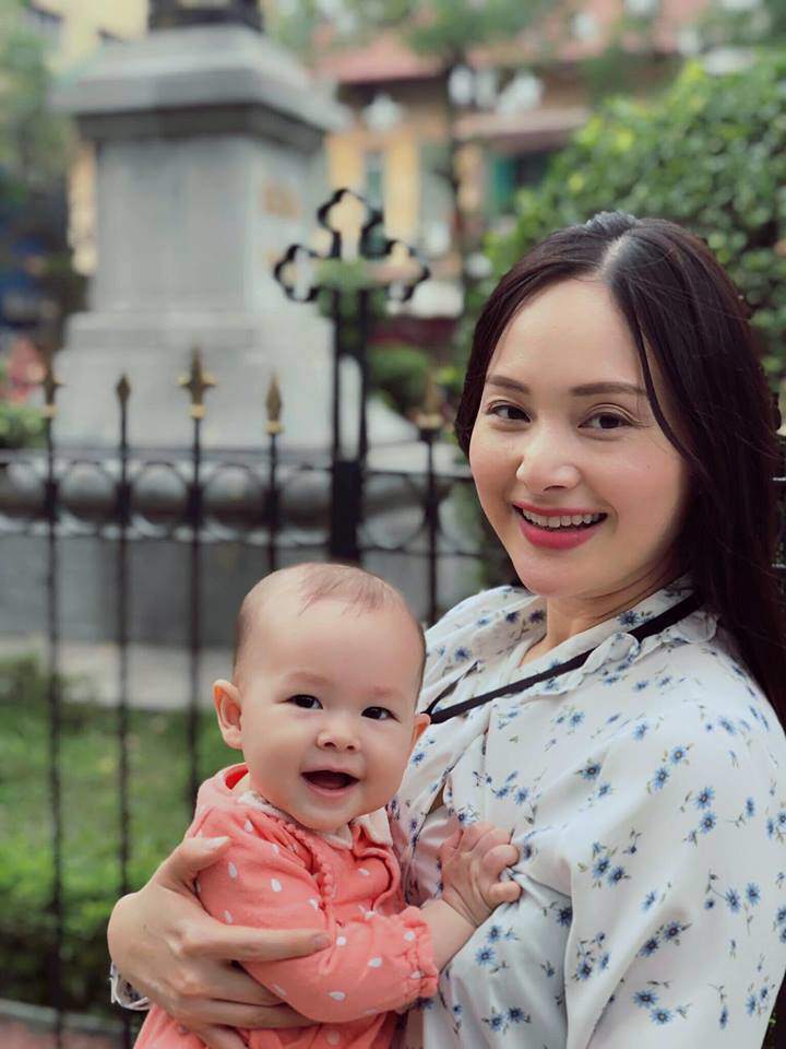 Sau khi sinh em bé được 4 tháng, người đẹp khoe thành tích giảm cân 14kg. Nữ diễn viên còn tự tin đăng tải bức ảnh bản thân diện bikini trước, trong và sau khi mang thai, sinh nở như động lực để thúc đẩy bản thân sớm ngày lấy lại body đẹp như mơ thời còn son.